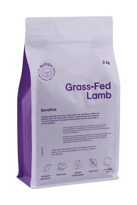 Ett näringsrikt torrfoder med 60 % gräsbetat lamm, särskilt utvecklat för vuxna hundar med känslig mage, hud eller foderallergier. Grass-Fed Lamb är ett monoproteinfoder med naturliga ingredienser och fri från spannmål, gluten och onödiga tillsatser. Receptet kombinerar färskt och lufttorkat lamm med sötpotatis, frukt, grönsaker och utvalda superfoods för att främja matsmältning, päls och ledhälsa. Fodret har en skonsam sammansättning som passar hundar av alla raser med normal aktivitetsnivå.