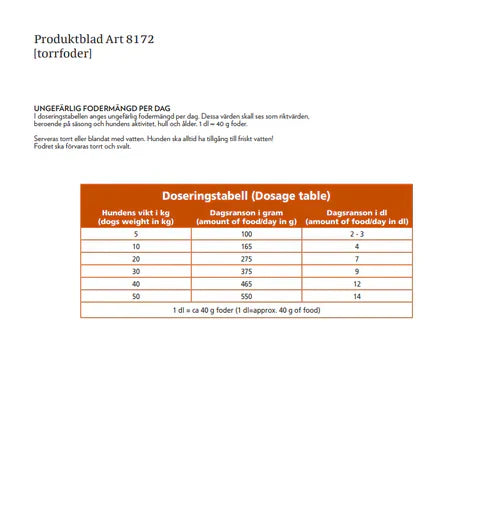 - Året runt-användning: Täcker din hunds dagliga näringsbehov och kan användas som dagligt foder året om.