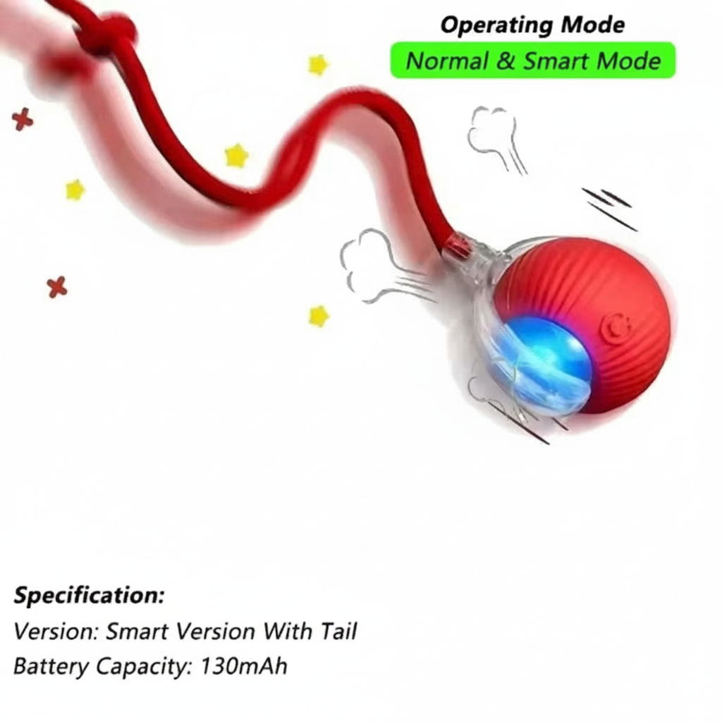 SpinBall är utvecklad för att väcka lek- och jaktinstinkten hos ditt husdjur på ett säkert och roligt sätt. Välj Normal Mode för en jämn och förutsägbar rullning när du vill att leken ska vara kontinuerlig, eller Smart Mode för ett mer interaktivt beteende där bollen aktiveras när djuret rör vid den. Tack vare den inbyggda funktionen Intelligent obstacle avoidance ändrar bollen riktning automatiskt när den möter hinder eller kör in i hörn — detta minskar risken för att den fastnar och gör leken mer dynamisk i vanliga hemmiljöer.